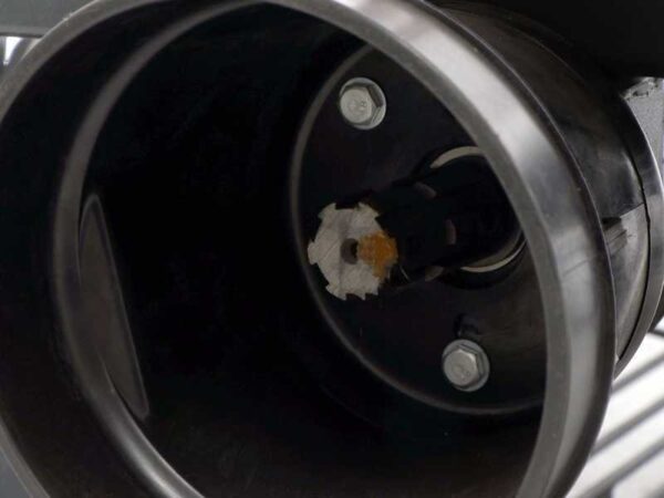 Son grand soc, qui couvre une grande partie de ses dimensions réduites, lui permet d’entrer dans le sol et de diriger le produit sur les tamis qui le sépareront grâce à la grille oscillatoire.