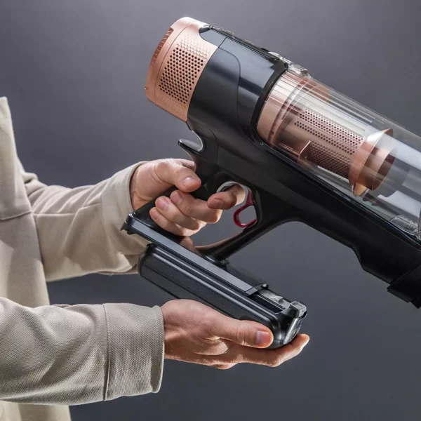Sa batterie amovible longue durée assure jusqu’à 1 heure 30 d’autonomie (en position aspirateur à main et mode Eco) pour nettoyer toute votre maison du sol au plafond en une seule charge. Ce temps d’utilisation prolongé permet de couvrir de larges surfaces sans interruption, rendant votre tâche ménagère plus fluide et moins contraignante. Le design fin et compact, avec un poids de seulement 1.8 kg en mode aspirateur à main, rend le nettoyage sans fil des plus agréables et faciles à manœuvrer