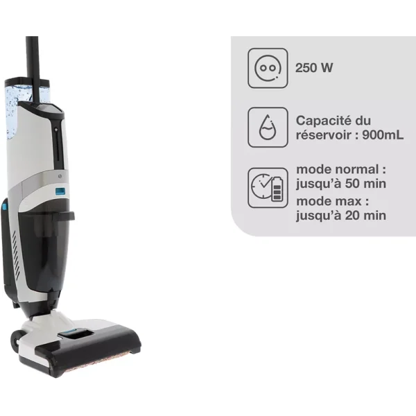 Le + : ses 2 modes : aspiration seule ou aspiration + lavage en un seul passage, sur tous types de sol