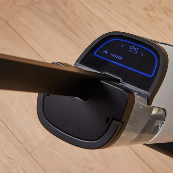 Un écran d’affichage ainsi que des alertes sonores, permettent d’avertir du niveau de batterie, de l’auto-nettoyage et du niveau d’eau des deux réservoirs (eau propre et eau sale). Des capteurs de niveau de salissure du sol permettent d’adapter la vitesse de rotation du rouleau et le débit d’eau propre.