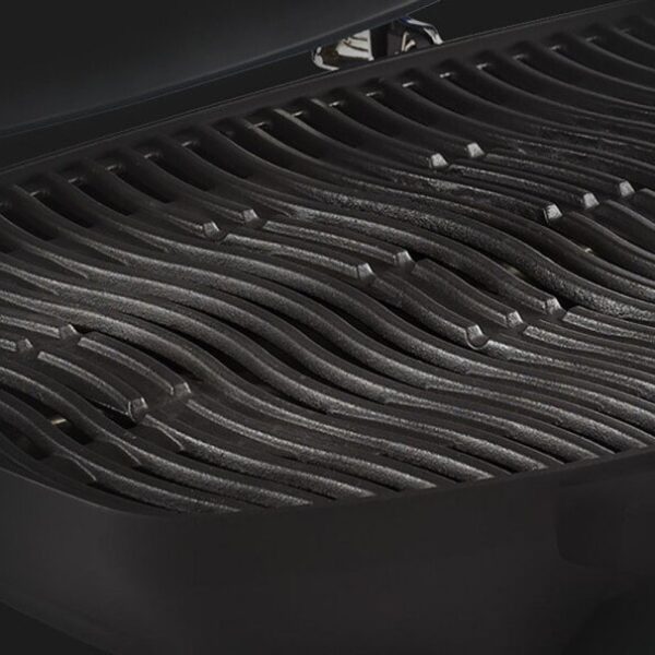 Les grilles en fonte ondulée résistent à la rouille et assurent une parfaite homogénéité de la chaleur sur toute la surface de cuisson.