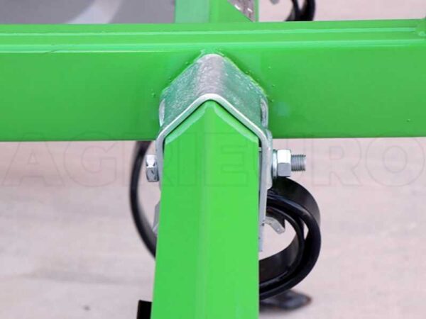 Le châssis est monté sur 3 rangées et l’espacement entre les dents est de 14 cm. Sur les extrémités des dents se trouve un soc facilement remplaçable.