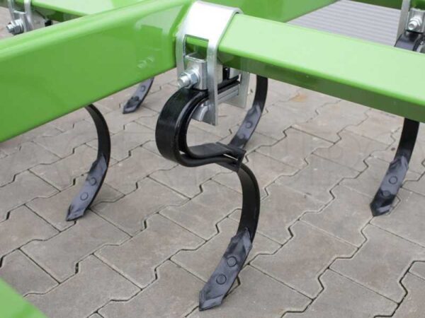 Différemment des décompacteurs agricoles ou des tillers à ressort, le cultivateur à ressorts a une profondeur de travail mineure et la distance entre les dents est plus petite. Le système de vibration des dents permet de préparer le sol pour le semis ou d’éliminer les mauvaises herbes envahissantes du terrain.