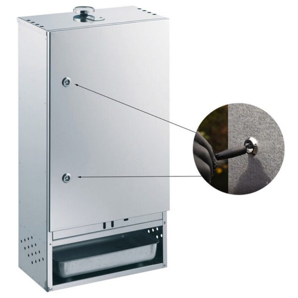 Enfin une porte à charnières équipée d’un système de clé (inclus) garantie un fumoir hermétique et un maintien optimal des fumées aromatiques à l’intérieur de la chambre de fumage.