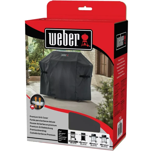 Protégez efficacement votre barbecue Weber avec cette housse Premium conçue spécialement pour les modèles Spirit II série 300 et EO‑210/EO‑220. Fabriquée en polyester robuste, elle est imperméable, résistante aux UV et conçue pour résister aux intempéries tout au long de l’année.