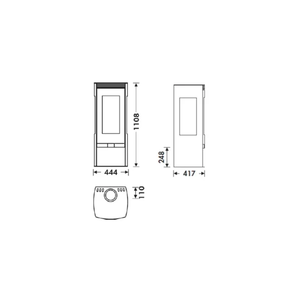 Le poêle à bois Alba se distingue par sa triple vue sur le feu, grâce à ses trois vitres qui offrent une vision panoramique des flammes.