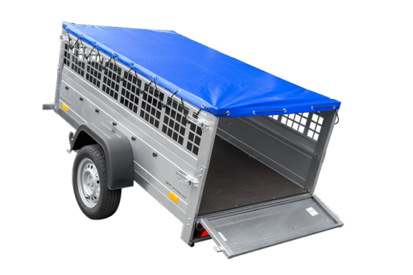 Les ridelles grillagées permettent de transporter facilement des matériaux volumineux ou légers, tout en assurant une bonne aération et visibilité du contenu. La bâche plate bleue protège votre chargement de la pluie et de la poussière.