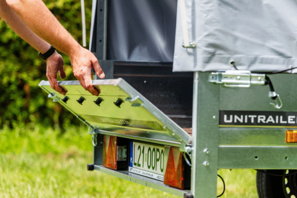 Grâce au timon pliable, vous pouvez charger ou décharger la cargaison beaucoup plus facile que normalement. Cette solution est également utilisée dans les remorques plus chères. Un autre des avantages de cette solution est la possibilité de stocker la remorque dans une position verticale avec un timon plié, debout à l’arrière. Vous n’avez donc pas à vous soucier que la remorque prenne beaucoup de place dans le garage ou ne rentre pas à cause du timon trop long. Vous pouvez la mettre même sur la façade du bâtiment !